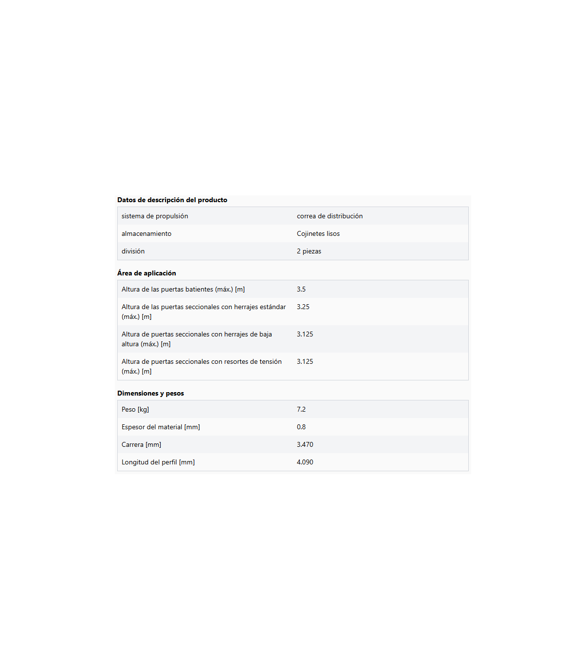 Riel de accionamiento para puertas de garaje, longitud de perfil de 4,09 m, grosor de 0,8 mm, correa dentada, 2 piezas. Para Comfort 260 (accu/speed), 270 (speed), 280, 360, 370 y 380.