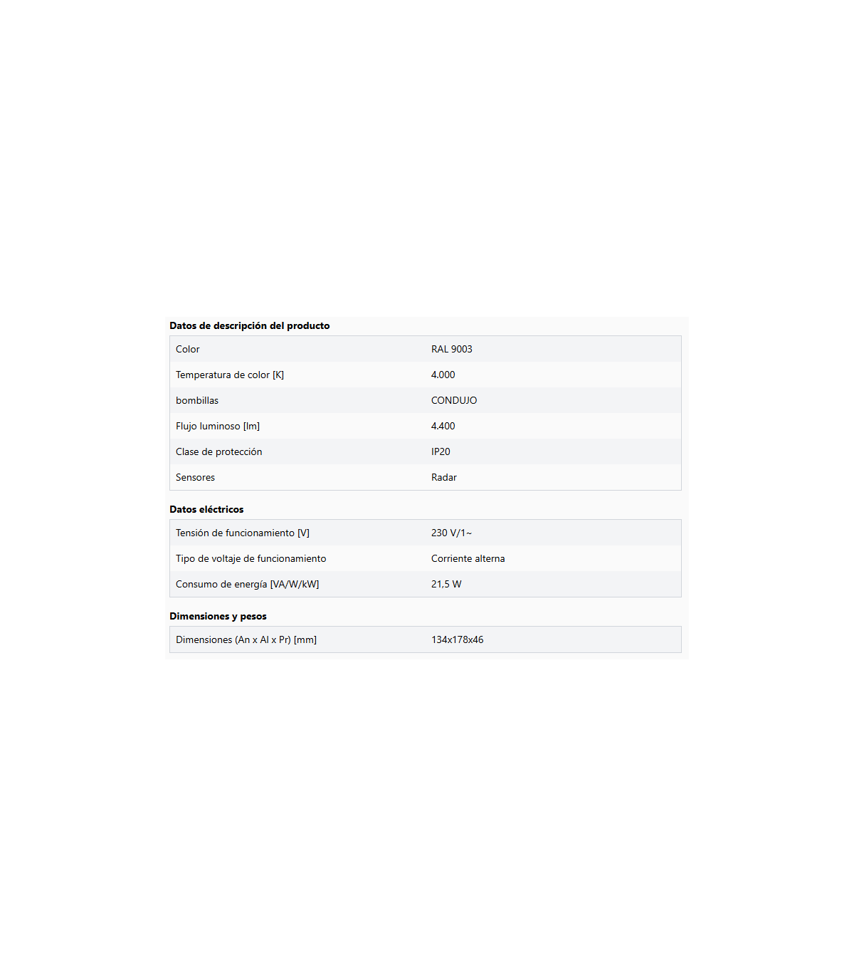 - Un sensor de luz diurna ajustable evita que la luz se encienda durante el día.