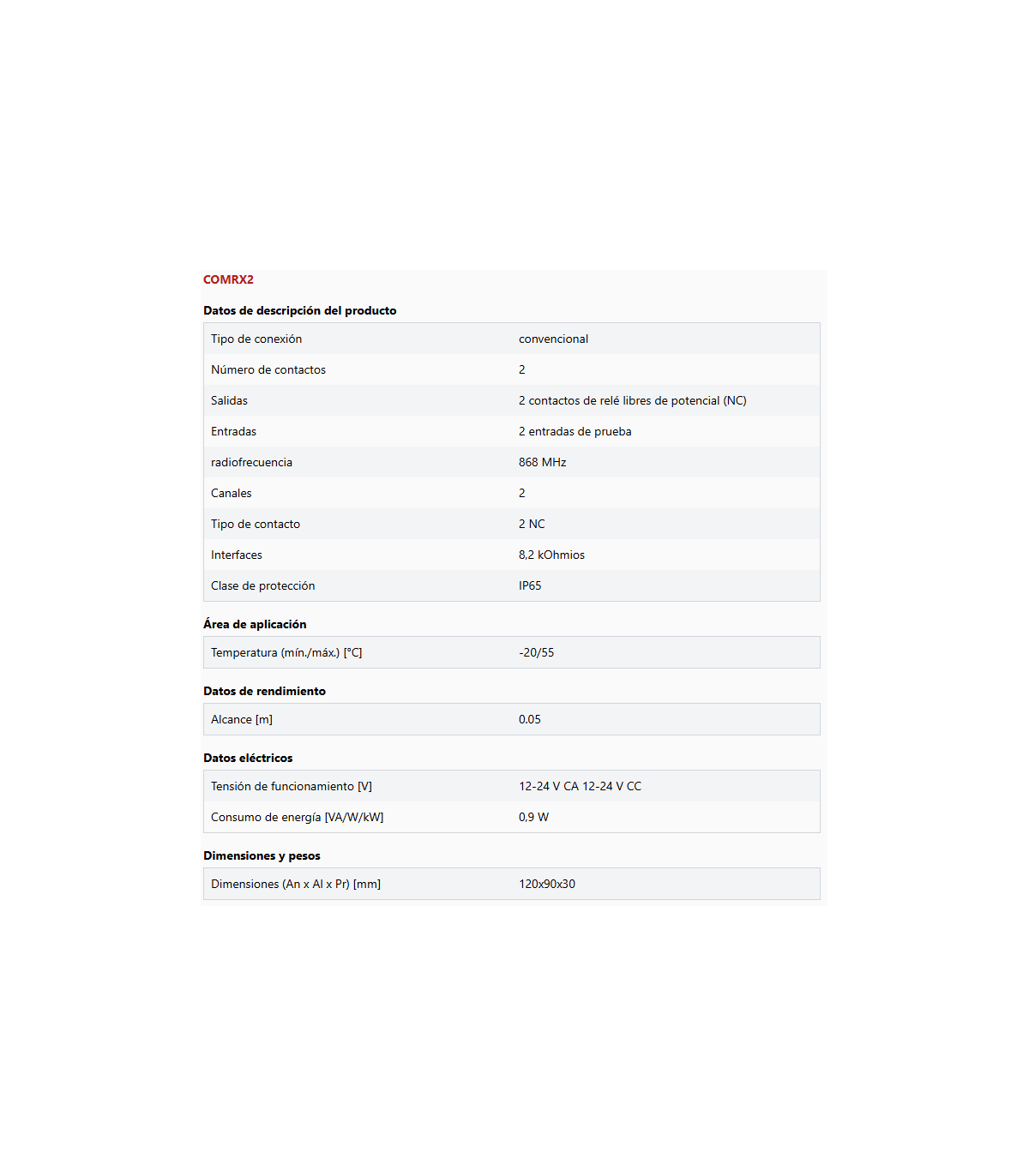 Sistema de transmisión por radio de 868 MHz para tiras de contacto de 8,2 kOhm, compuesto por: transmisor COMTX2 y receptor COMRX2 (hasta 2 transmisores simultáneos). Para todos los variadores. Para tiras de contacto mecánicas o de 8,2 kOhm. Precaución: No compatible con versiones anteriores de transmisores COMTX y receptores COMRX.