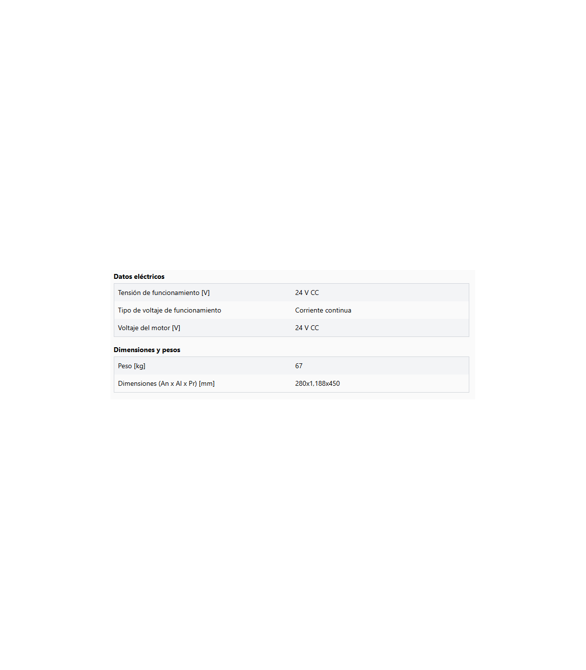 Accionamiento para brazos de barrera hasta 5 m: motor 24 V-DC, 2.500 ciclos al día.