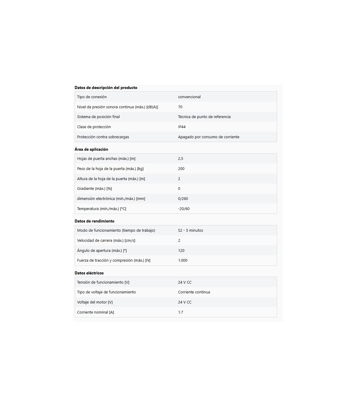 - Salida 24 V CC, máx. 50 mA