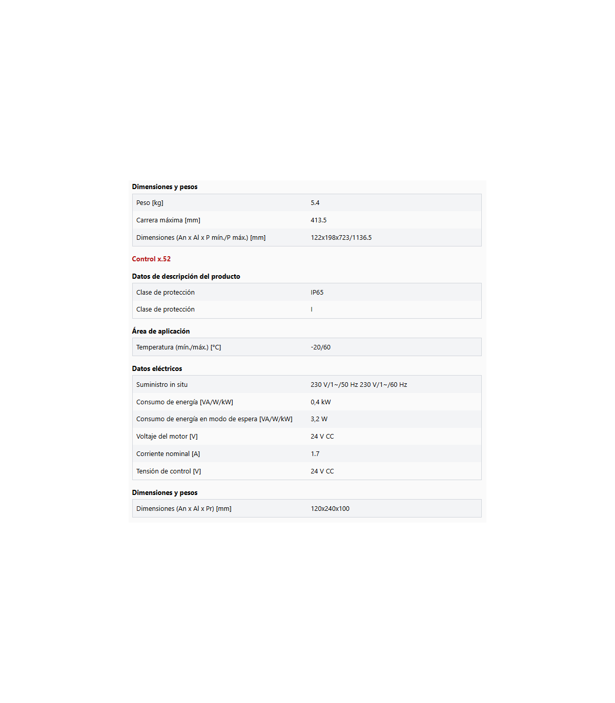Unidad de control Control x.52