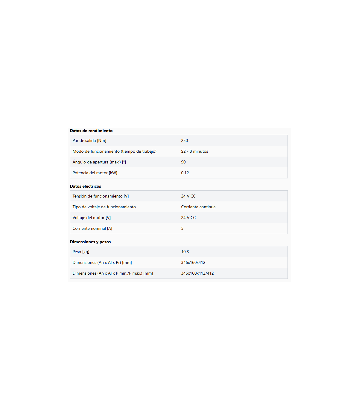 - Salida 24 V CC, máx. 250 mA