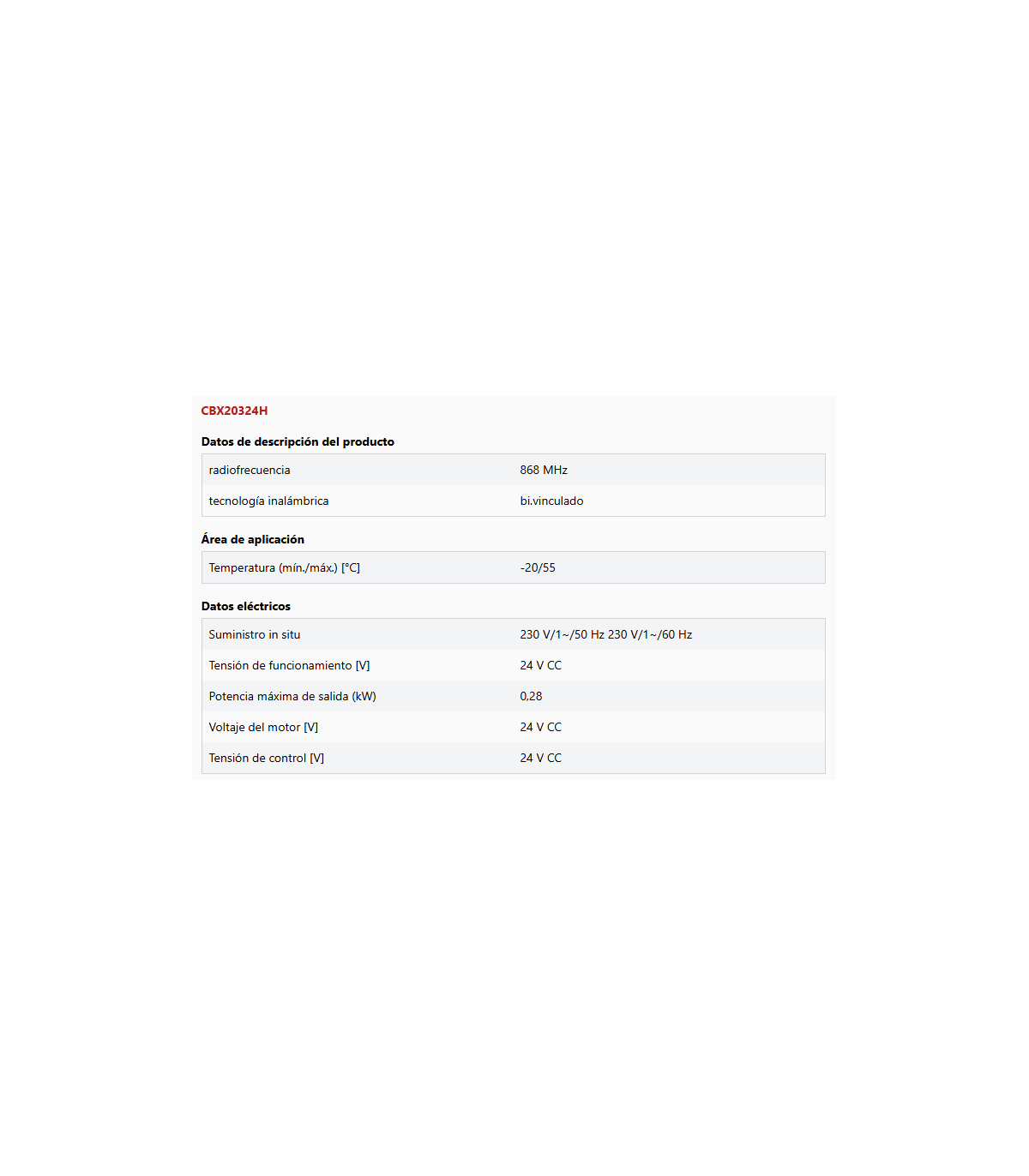 - Unidad de control externa CBX20324H con receptor de radio integrado, bi-linked 868 MHz