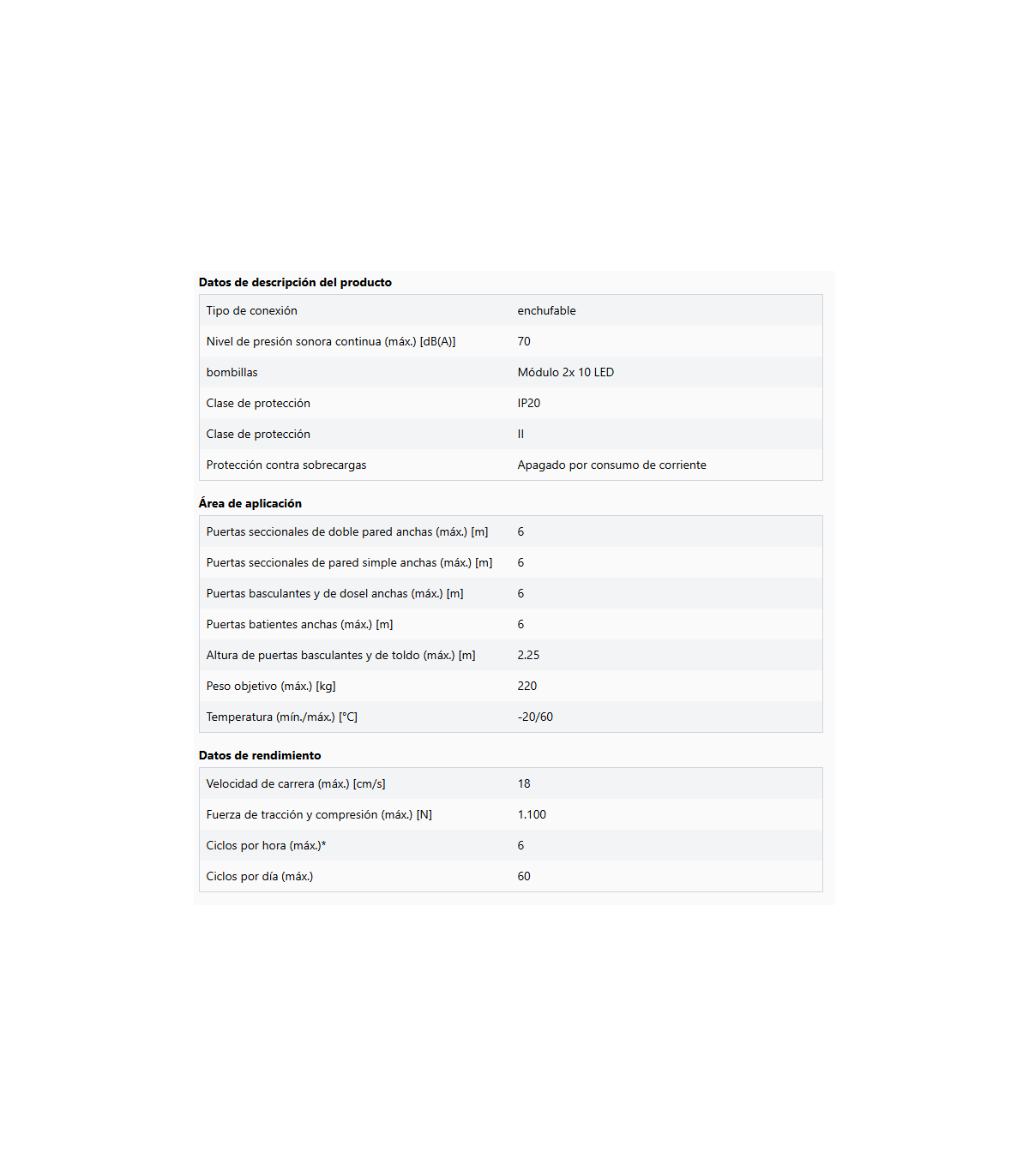 - La velocidad de apertura y cierre de la puerta se pueden programar por separado.