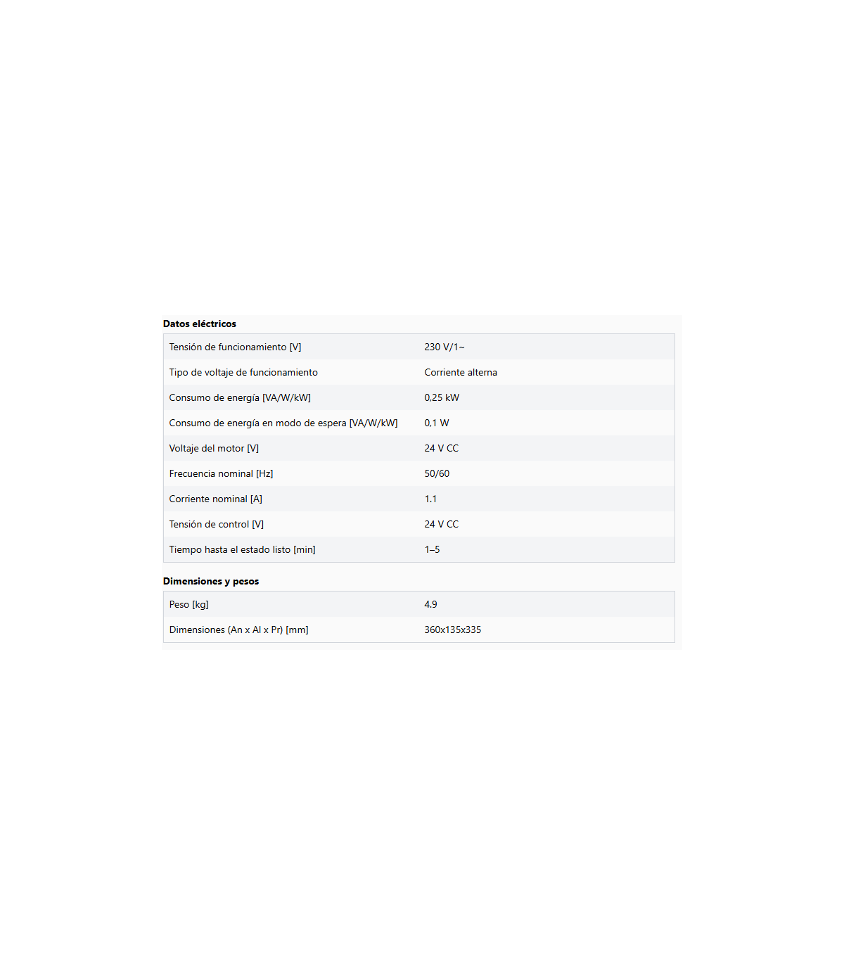 - Salida 24 V CC, máx. 50 mA