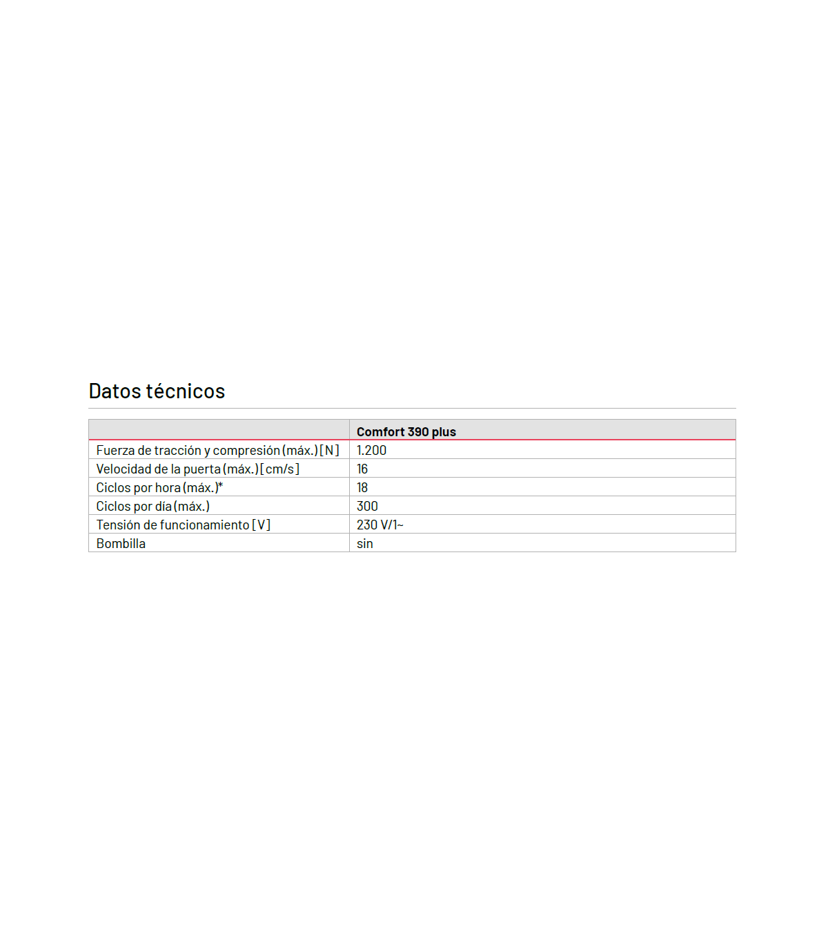 - Potente motorreductor de corriente continua con alto grado de autorretención para puertas de hasta 6,0 m de ancho y 240 kg de peso
