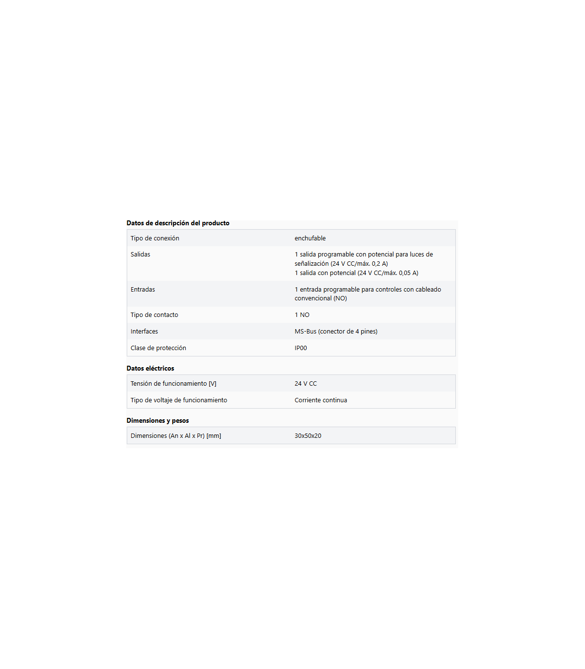 Placa de expansión con una entrada programable y un relé programable, 48 V CA/CC, con cable MS-Bus de 0,2 m y soporte de montaje para abre-puertas de garaje. Para Comfort 260 (speed), 270 (speed), 280, 360, 370, 380 y 390.