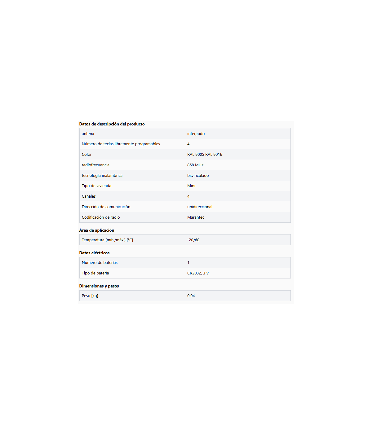 Compatible con todos los controladores Marantec y productos de terceros (en combinación con un receptor multibit adecuado).