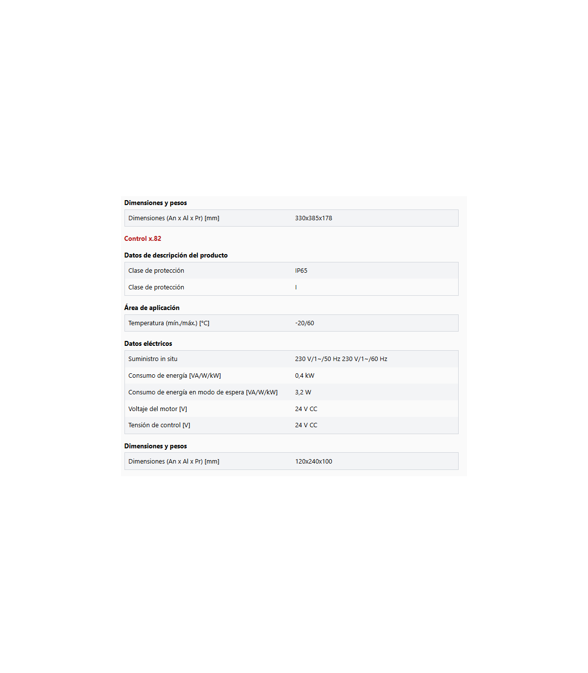 - Detección de obstáculos en función de la corriente: no se requiere protección activa del borde de cierre