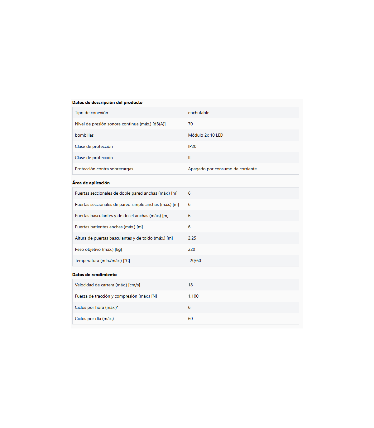 Kit para puertas de garaje hasta 165 kg: Motor 24 V-DC, 750 N, 16 cm/s.