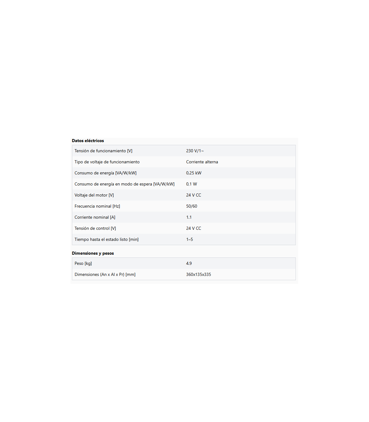 - Salida 24 V CC, máx. 50 mA