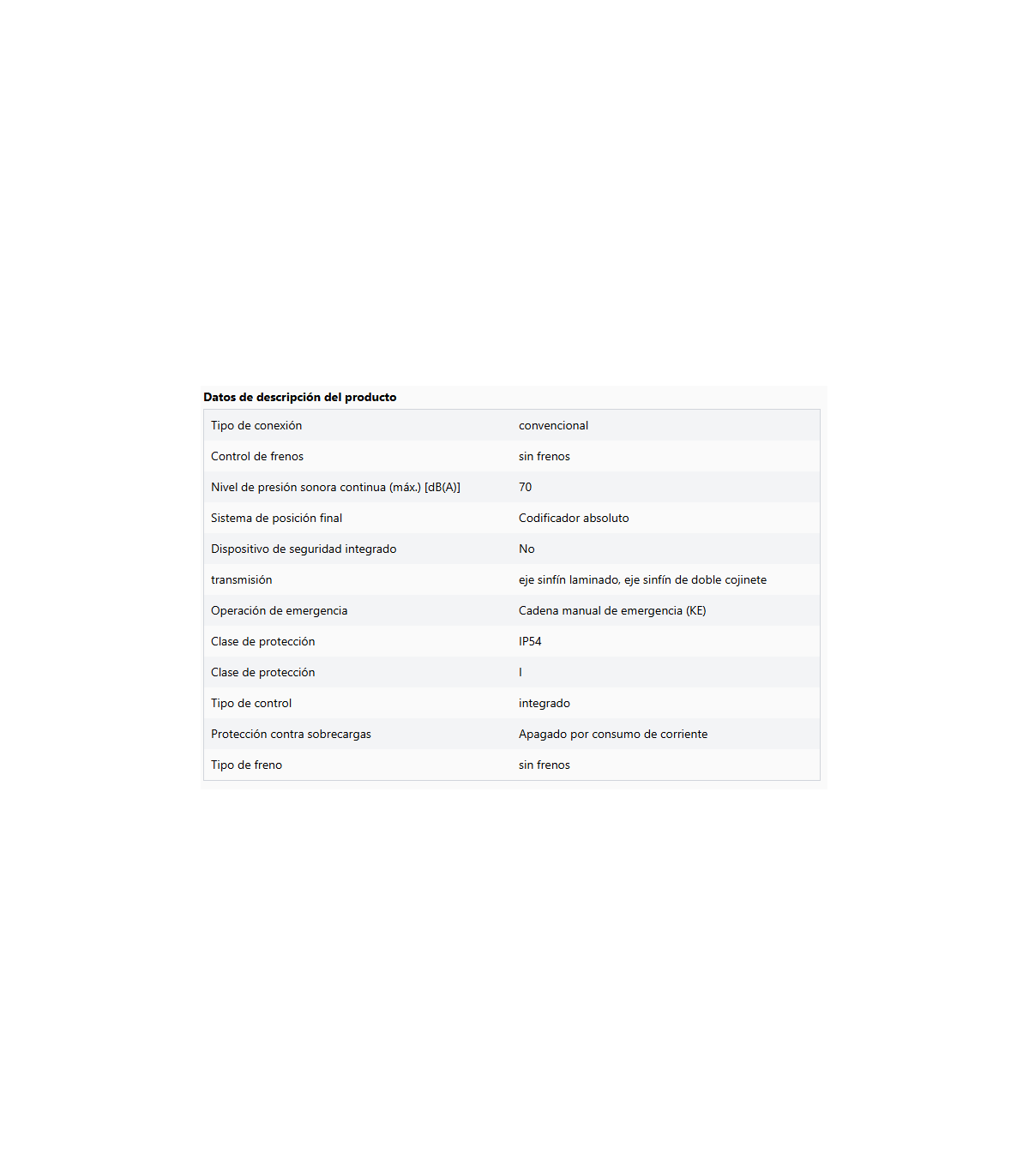 - Accionamiento de emergencia mediante manivela de emergencia (KU), cadena de emergencia (KE), desbloqueo de emergencia (E), desbloqueo de emergencia con retorno por resorte (E-FR) o desbloqueo de mantenimiento con cadena de emergencia (E-KE)
