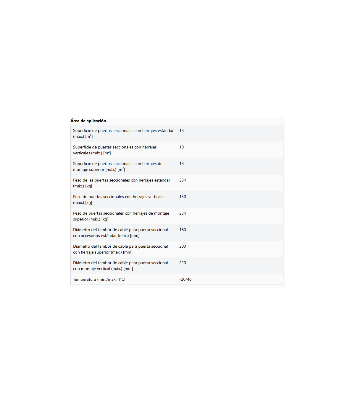 Juego para puertas seccionales con muelles de hasta 18 m², motor 24 V-DC, 25 Nm, 24 min-1, 25,4 mm, con control integrado.