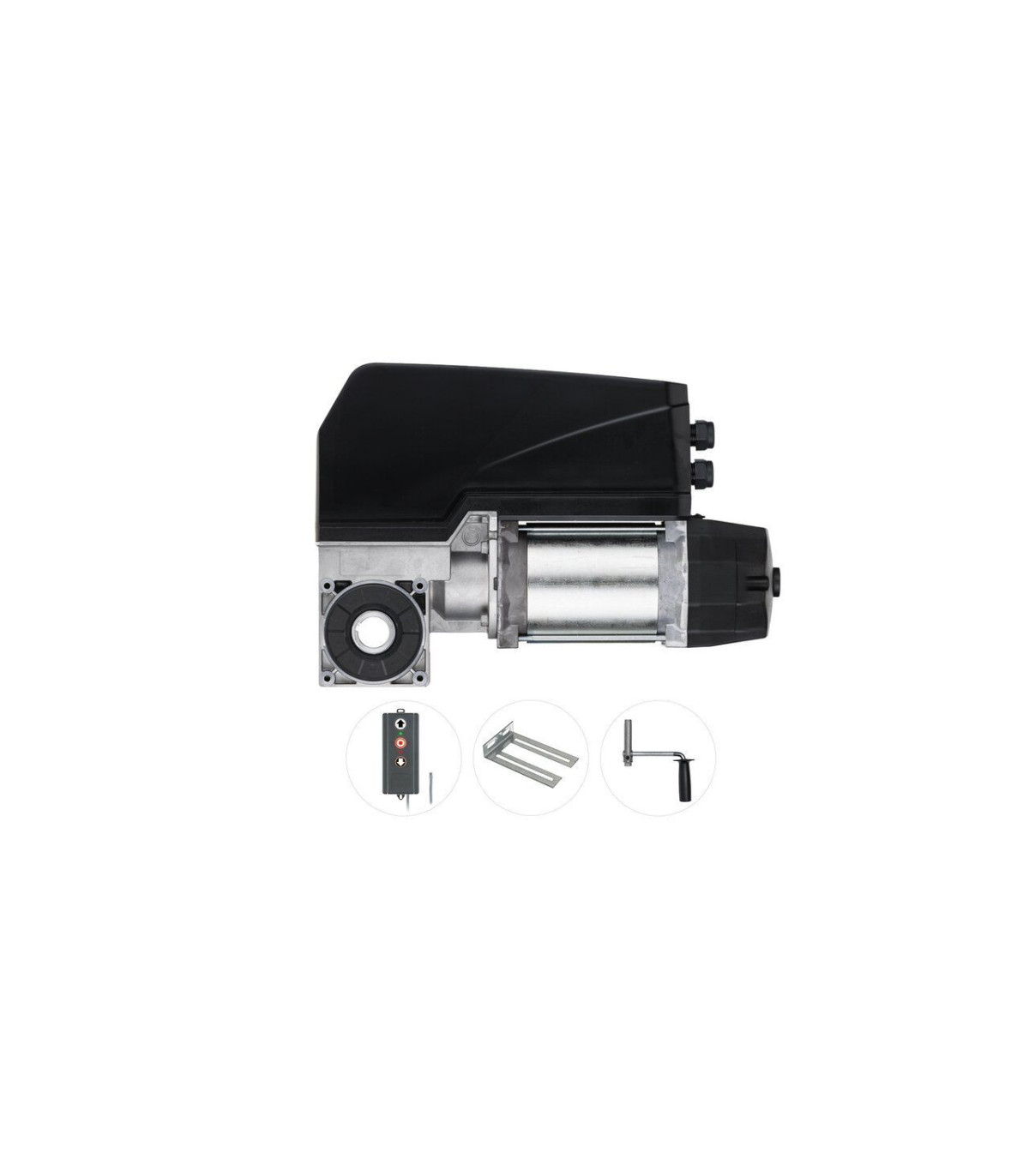 Juego para puertas seccionales con muelles de hasta 18 m², motor 24 V-DC, 25 Nm, 24 min-1, 25,4 mm, con control integrado.