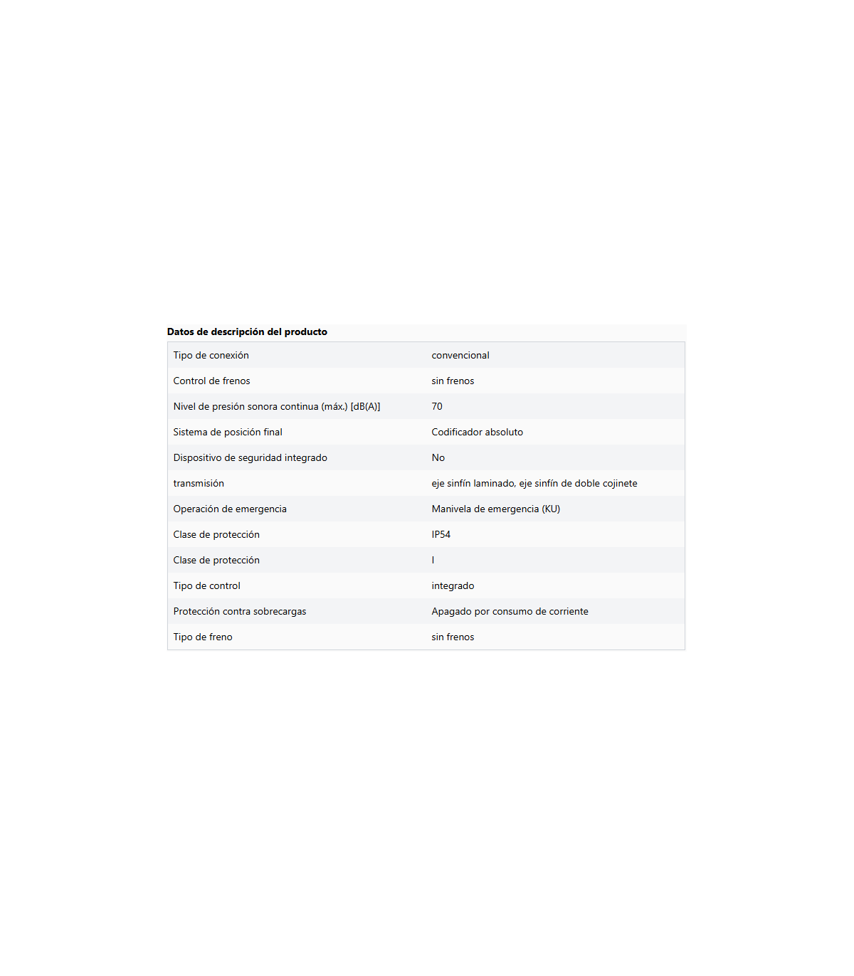 - Accionamiento de emergencia mediante manivela de emergencia (KU), cadena de emergencia (KE), desbloqueo de emergencia (E), desbloqueo de emergencia con retorno por resorte (E-FR) o desbloqueo de mantenimiento con cadena de emergencia (E-KE)